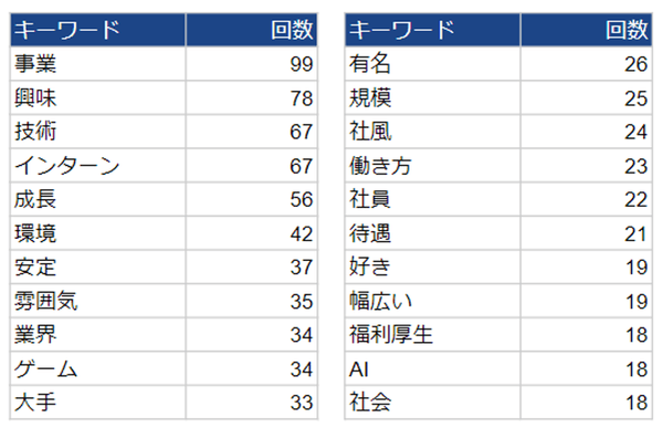 ■出現回数の多いキーワード ― 成長や環境、雰囲気、働き方なども重要視