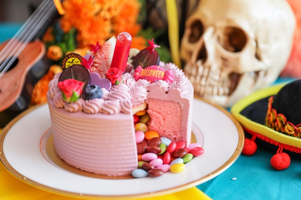 メキシコの伝統行事「死者の日」をテーマにしたオリジナルデコレーションルーム。“ガイコツのハロウィンパーティー”をイメージした客室では、まるでガイコツに招かれた気分で、非日常空間を楽しめます。本プラン限定の“マリーゴールドポタージュ”&“死者の日バーガーセット”をご用意。“特製ハロウィンギミックケーキ”は、ケーキをカットすると中からカラフルマーブルチョコレートが出てきて盛り上がること間違いなし! 個室で安心安全にハロウィンパーティーをお楽しみいただけます。