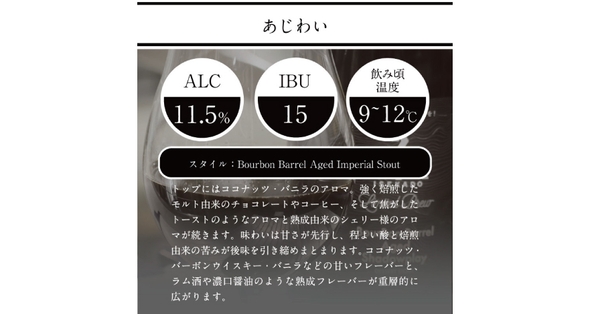 スタイル:Bourbon Barrel Aged Imperial Stout