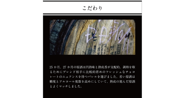 2年以上もの長期間、樽熟成した原酒をブレンド
