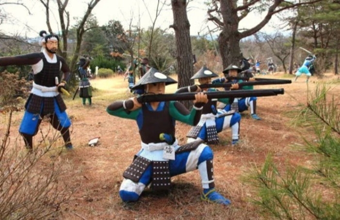 関ヶ原合戦を再現したテーマパーク型資料館です。約 30,000 ㎡の敷地内に、コンクリート像作家:浅野祥雲作の極彩色のコンクリート製等身大武将像を、史実にもとづき、豊臣軍と徳川軍の陣地に配置しています。屋外展示のほか、参加型ゲーム、関ヶ原合戦屏風を展示する資料館もあります。
