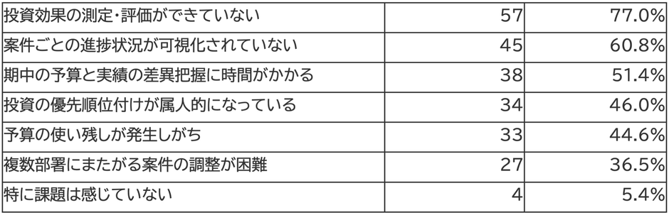 設備投資の予算・進捗管理で最多の課題は「投資効果の測定・評価ができていない(77%)」