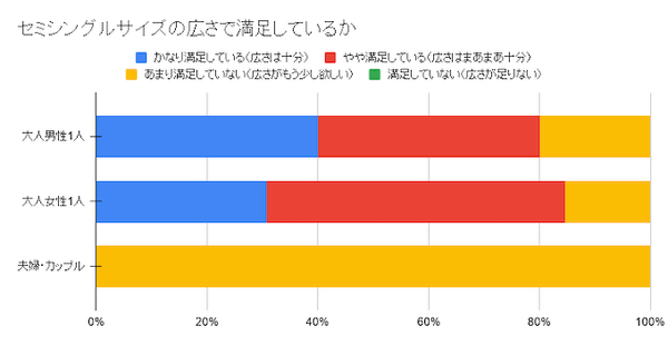 次にセミシングルサイズの広さにどれくらい満足しているかの調査は以下の結果となりました。