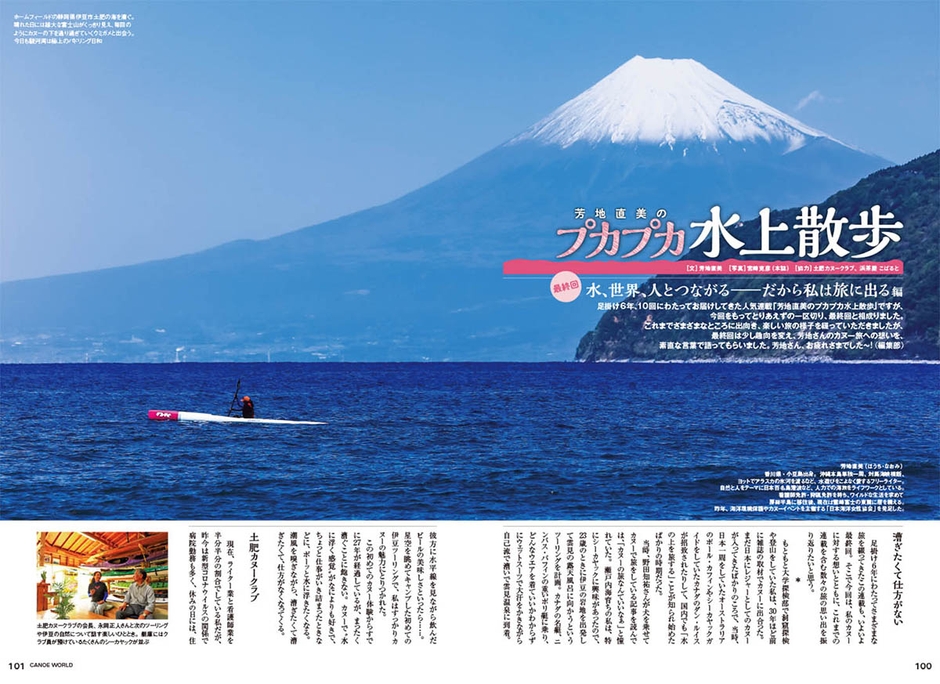 巻頭特集は、「プロに学ぶ 超実践テクニック」。フィールドを大きく海と川とに分け、より現実に即した“実践的”なテクニックを、インストラクターを招いて解説しています。そのほか、パックラフト指南「パックラフトでいい気分!」、「ファルトボートに首ったけ!」、「水辺の漕ぎ語り」、「芳地直美のプカプカ水上散歩」など、魅惑的なコンテンツを多数ご用意しています。