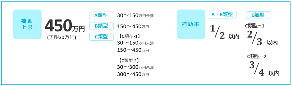 IT導入補助金の補助上限や補助率については以下の通りです。