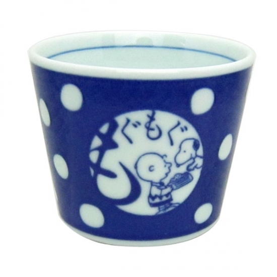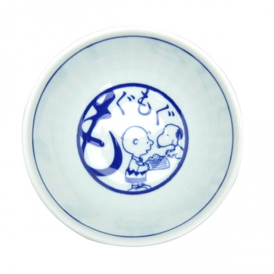まずは、ドットデザインがかわいい蕎麦猪口(そばちょこ)から!「もぐもぐ」のひらがなと、スヌーピー&チャーリーブラウンのコラボがいい味出してます。こんなかわいいそばちょこが出てきたら、お子さんも張りきっておそばを食べてくれそうですね♪