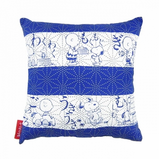 わくわく・ぎゅぎゅっ・うきうき・ごろごろ・むしゃむしゃ、とたくさんのオノマトペと、スヌーピー&チャーリーブラウンが隠れたクッションです。
