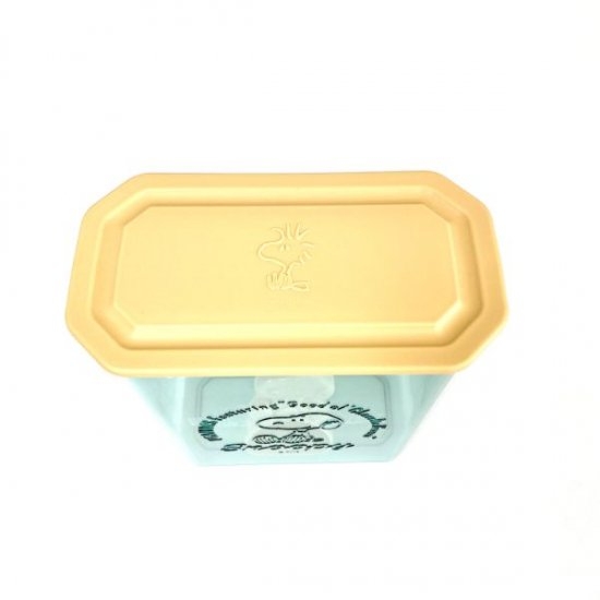 淡いブルーグリーンがキレイな、粉末保存ケースです。スッキリとシンプルなたたずまいですが、中央にはちゃんとスヌーピーが存在感を出しています。
