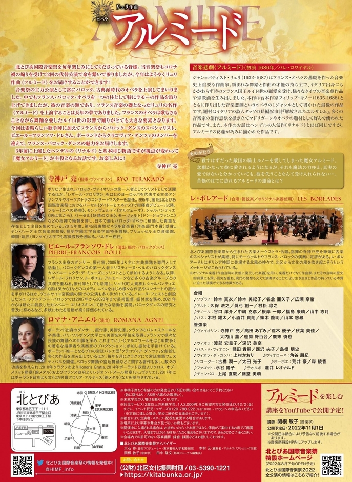 (公財)北区文化振興財団主催、北とぴあ国際音楽祭2022 『リュリ作曲 オペラ《アルミード》』が2022年12月9日 (金) 、2022年12月11日 (日)に北とぴあ さくらホール(東京都北区王子1-11-1)にて上演されます。