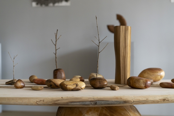 「日々、素材に心を寄せ、技を通して純粋な美を引き出す工芸家の仕事には、自己表現から出発するアーティストとは異なる心と手のはたらきがある」と、中川は言います。今展では、二人のプロダクトのほか、ドローイングやコラージュで「作品を作る時の、工芸家の頭の中」の可視化を試みます。