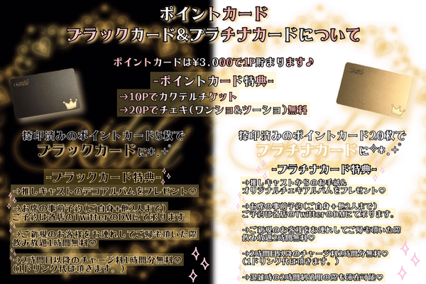 『コンセプトカフェ アイドルリゾート 新宿・大久保』はポイントカードがあり、ポイントを貯めるとカクテルチケットやチェキが無料になる特典がもらえます。