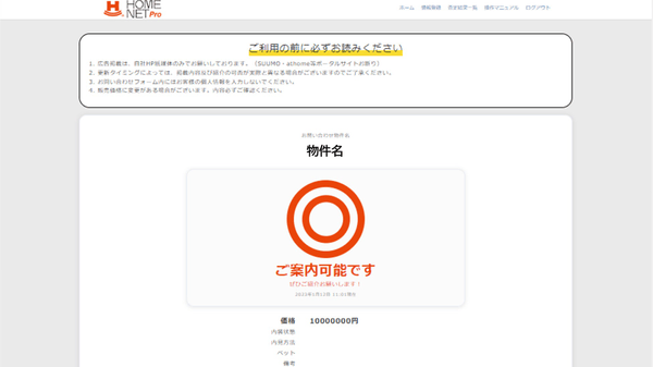 不動産仲介会社向け業務支援サービス『HOMENET Pro(ホームネットプロ)』 機能アップデート