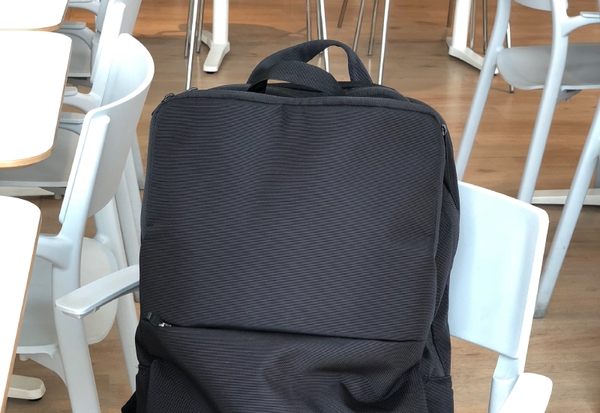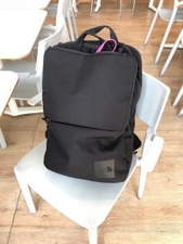 カバンは黒一色。ベルトも靴に合わせてバッチリ決まって、