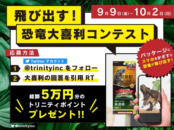 「デジタルライフを豊かにする」をスローガンに、スマートフォンアクセサリーをはじめとした、デザインや使い心地に優れた製品を企画・開発するトリニティ株式会社(代表取締役:星川 哲視、本社:埼玉県新座市)は、iPhone 14シリーズ発売記念、怒涛のキャンペーン祭りを実施。第1弾として、飛び出す恐竜大喜利コンテストをTwitterにて開催いたします。