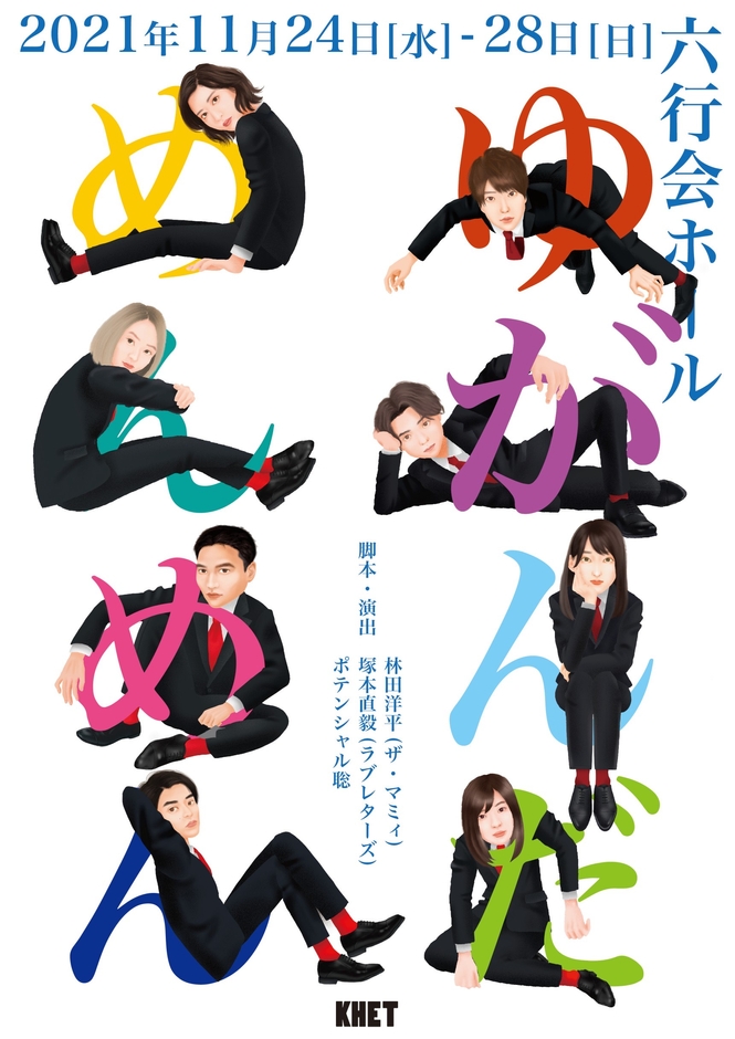 KHET produce『ゆがんだめんめん』が2021年11月24日 (水) ~2021年11月28日 (日)に六行会ホール(東京都品川区)にて上演されます。この度、メインビジュアルが公開されました。チケットはカンフェティ(運営:ロングランプランニング株式会社、東京都新宿区、代表取締役:榑松 ⼤剛)にて11月6日(土)より一般発売開始いたします。
