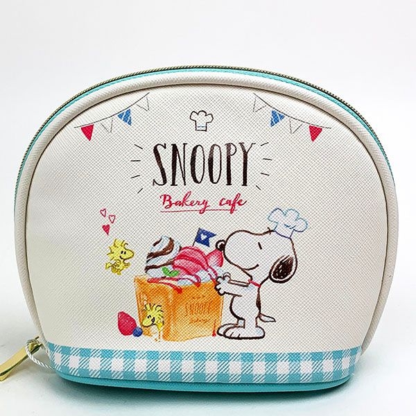 まずは三つ折り財布のご紹介です。コック帽をかぶったスヌーピーと、美味しそうなフルーツたっぷりのベーカリーがデザインされています。見た目にもキュートで美味しそう♪サイズは9.5×8×3cmで、コンパクトです。