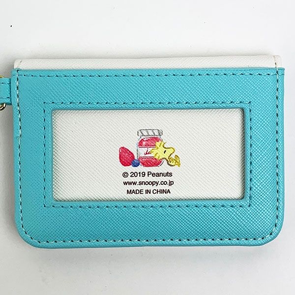 パスケース入れ部分はウッドストックのデザイン♪縁取りのミントブルーも爽やかです。