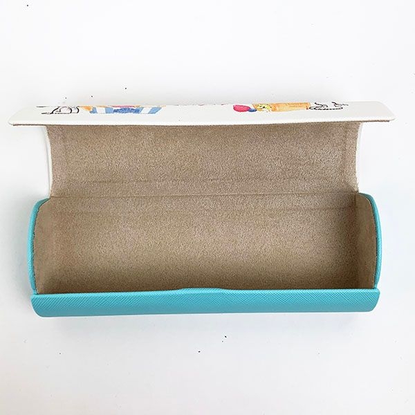 中はシンプルなベージュです。柔らかめの素材が優しくメガネを守ってくれますよ。