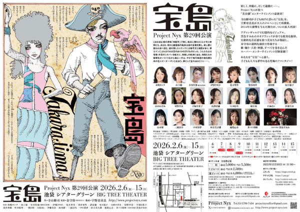 Project Nyx 第29回公演『宝島』が2026年2月6日 (金) 〜 2026年2月15日 (日)に池袋 シアターグリーン BIG TREE THEATER(東京都 豊島区 南池袋 2-20-4)にて上演されます。