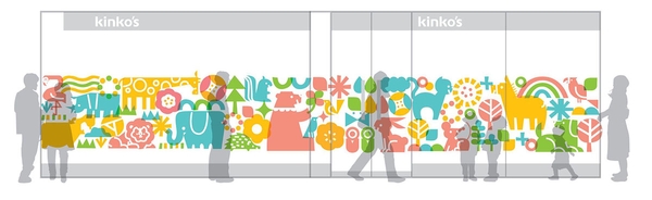 コラボレーションアーティストとなる、「サタケシュンスケ」はポップでグラフィカルな作品が特長です。キンコーズの店舗の外観を楽しく優しいイメージで装飾し、地域へも彩りを提供します。