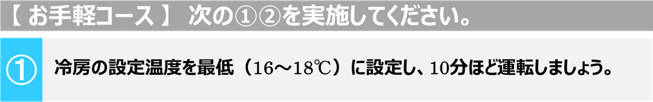 また、エアコンは室温が設定温度に到達すると室内を冷やす動作を停止するため、最低温度に設定しておくことで、室温が設定温度に早期に到達することを防ぎます。なお、最低温度は機種によって異なります。