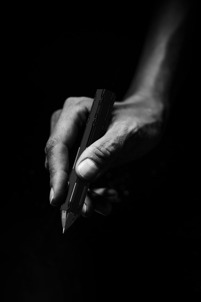 メイン素材には高級腕時計にも使用される6000番台アルミニウムと316Lステンレススチールを採用。CNCによる高精度加工と、最新MIM工法によるヒンジ構造。54個ものパーツをカードサイズに凝縮したこのペンは、デザイン、機能、そして質感すべてが異次元。