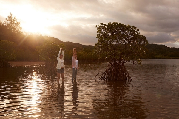 マングローブ林を見渡しながら、大きく深呼吸をして目覚めのストレッチをします。足元から伝わる大地の感覚や、耳から聞こえる波の音。夜明けの柔らかな空気とともに、リラックスしながらも心地よい朝の時間を過ごすことができます。