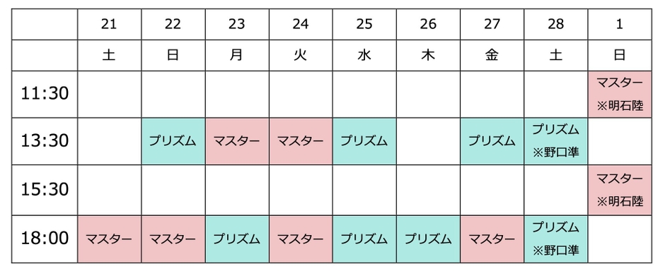 ※2月28日(土)昼夜公演と3月1日(日)昼夜公演は、野口準さんと明石陸さんが入れ替わります。