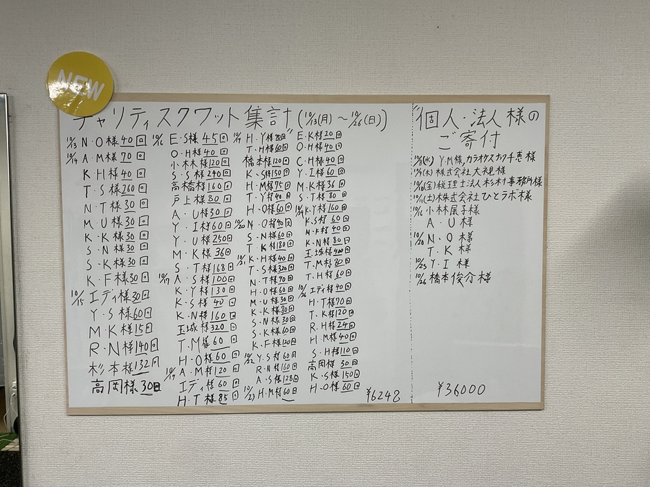 今回の寄付には、スクワット参加だけでなく、個人・法人のお客様からの温かいご支援 も含まれております。