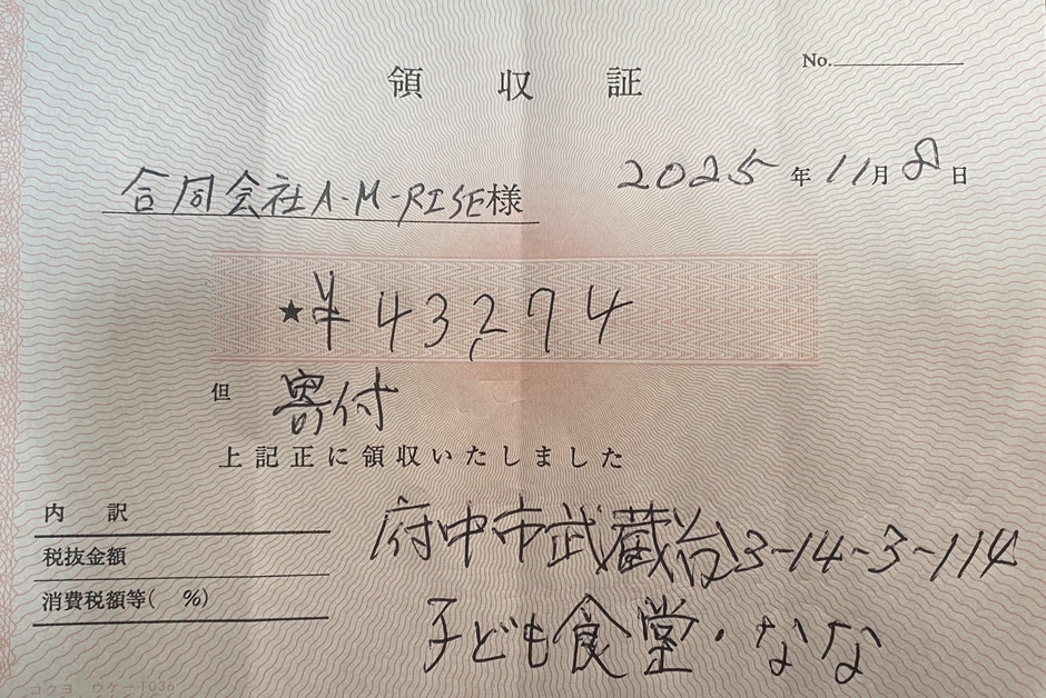 府中市のパーソナルジム健想(https://www.gym-kenso.com)を運営する合同会社A.M-RISE(代表:有山弘起)は、2025年10月に地域貢献イベント「チャリティスクワット」を開催し、集まった寄付金 43,274円 を府中市内の【子ども食堂なな様】へ寄付いたしました。