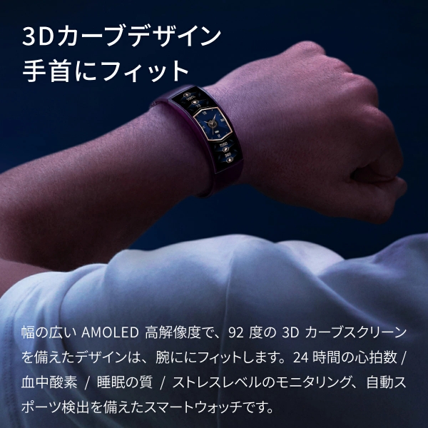 超ワイドなAMOLED高精細3Dカーブスクリーンを採用した「Amazfit X」が登場!連続24時間の心拍数および血中酸素モニタリング、睡眠の質、ストレスレベルのモニタリング、および自動スポーツ検知機能を搭載した「Amazfit X」は、湾曲したリチウムイオンバッテリーの電力を利用して、1回のフル充電で最大7日間の使用が可能です。スマートウェアラブルデバイスにおける技術的なブレークスルーを象徴する、スマートウォッチの新しい標準を実現しました。