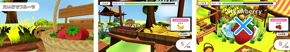 指令と同じフルーツを探すと英語の発音を学べる音声が流れます!