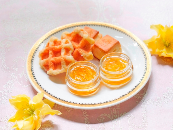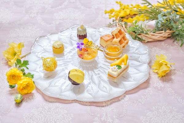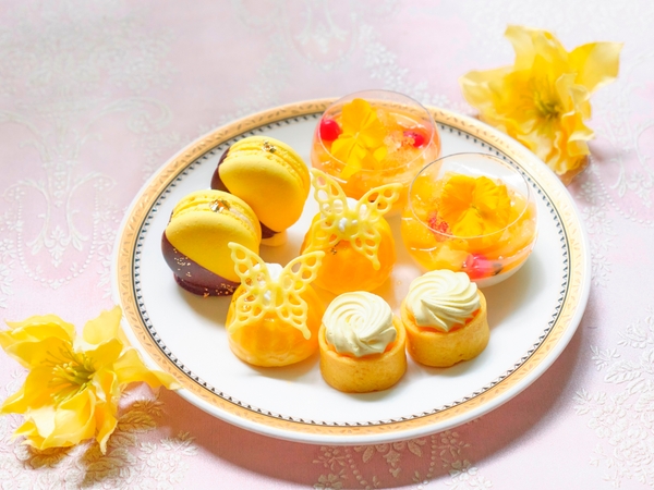 プリンセスパフェ~トロピカル&ココナッツ~ / オペラ~マンゴー&パッションフルーツ~ / レモンのカヌレ / シャンパンジュレのパンナコッタ~パイン&パッションフルーツ~ / レモンのマカロン / タルトシトロン/ マリーの愛したクグロフ風マンゴームース / ワッフル / プレーンスコーン / マーマレード