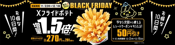 【その②:X(エックス)フライドポテトが1.5倍増量でおトク!】
