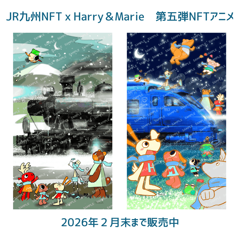「冬」デザインの2種類の「JR九州NFT×Harry&MarieコラボNFT」をお買い上げで、
