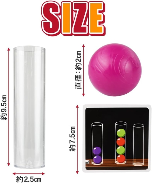 サイズ(約):・試験管:2.5cm×9.5cm ・ボール:直径2cm ・カード:7.5cm