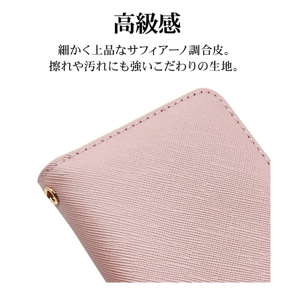 擦れや汚れに強い、細かく上品はサフィアーノ調のフェイクレザーを使用しています。