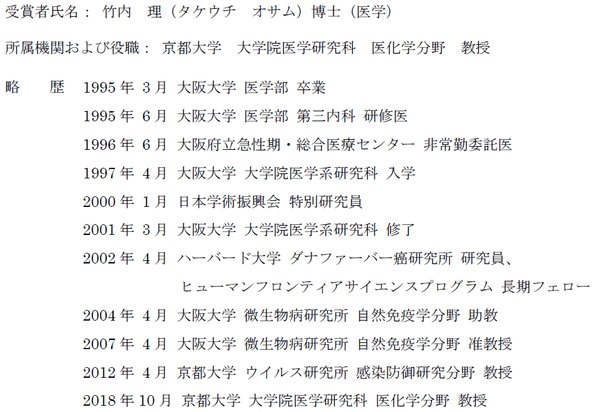 ○竹内 理氏 京都大学 大学院医学研究科 医化学分野 教授