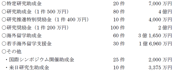 今年度の上原賞は2名、各種助成件数は335件、助成金総額(上原賞副賞を含む)は13億