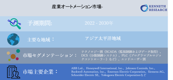 リサーチ・ネスターの一部門であるケネス・リサーチは最近、2021年7月27日に産業オートメーション市場の予測評価を提供する調査レポートを発表しました。産業オートメーション市場における成長ドライバー、市場機会、課題、脅威など、いくつかの主要な市場ダイナミクスを強調しています。