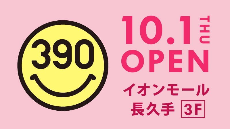 全品390円の『サンキューマート』が「イオンモ-ル長久手」に10月1日(木)OPEN!