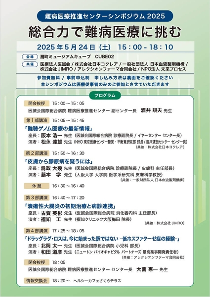 医療法人医誠会(本部:大阪市北区/医誠会国際総合病院)は、2025年5月24日(土)、扇町ミュージアムキューブにて「難病医療推進センターシンポジウム2025 総合力で難病医療に挑む」を開催いたします。