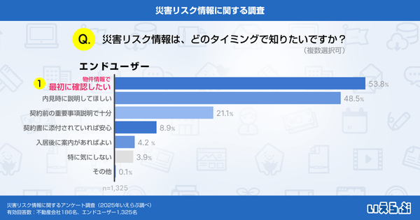 約8割のエンドユーザーが災害リスク情報を重視、不動産会社の情報開示と温度差|いえらぶ調べ