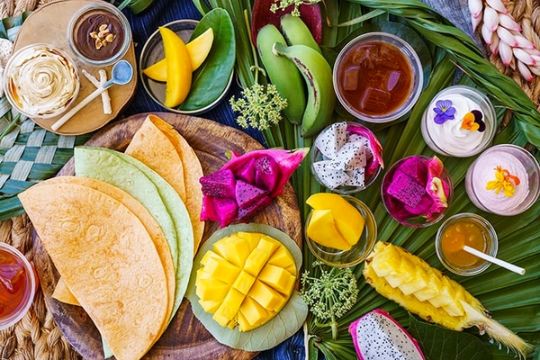 マンゴーの食べ比べも楽しめる特別朝食「トロピカルフルーツのタコス」