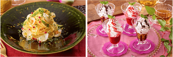 左:「ゆり根と柚子クリームパスタ」には、北海道生クリームと北海道牛乳を使用。濃厚でクリーミーなソースとゆり根のホクホク感、爽やかな柚子のアクセントをお楽しみください。