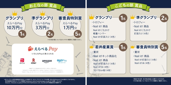 受賞者には、おとなの部「えらべるPay10万円分」やこどもの部「Nail it!!商品やトロフィー」「Nail it!!キット商品化」など豪華賞品をご用意しています。