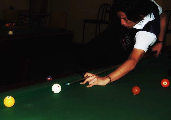 10代の頃から偶に遊びでやっていたのですが、20歳の頃、大阪梅田の北新地で夜の仕事をしていて、お客さんとのつき合いで南船場のプールバー(ビリヤード台を設置しているバー)に立ち寄ったことがありました。そのプールバーは今はもう閉店してしまいましたが、店内は薄暗く、やや高めのバーカウンターに高めのどっしりしたイス、お酒の棚に怪しげな赤い照明がちらほら、ビリヤードテーブル2台は外枠真っ黒でラシャ(テーブルクロス)は真っ赤!大人の雰囲気で格好良すぎる空間でした。『ここで格好良くプレーしたい!』と単純に思って練習するようになったのがきっかけです。店員さんもみんな格好良かった、、それから何度も通うようになって、上達を褒めてもらうことを楽しみにひたすら練習していましたね。