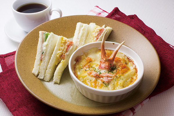 イメージ写真冬の味覚「蟹のマカロニグラタン」と「ミックスサンド(ハーフ)」をワンプレートにしたメニューをお楽しみください。