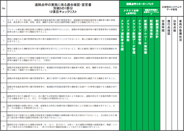 詳細は、別紙 点呼システムの選び⽅をご参照ください。
