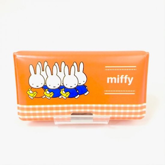 デザイン違いには、オレンジカラーのセットもご用意しています。こちらには、ミッフィーが並んでお散歩中のイラストが入っていて、ギンガムチェックもオシャレです。